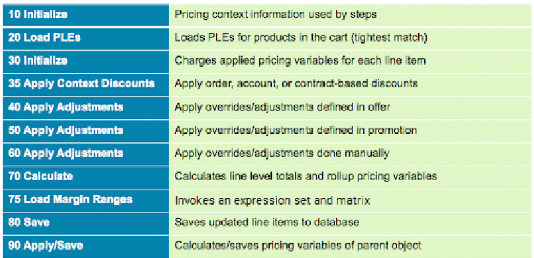 All attribute pricing steps must occur before the Initialize Pricing Context step; therefore, the sequence must be before 10