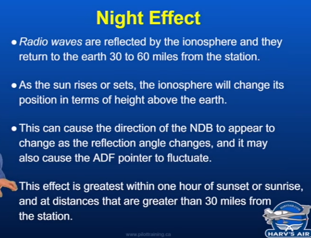 What is the Night Effect on NDBs?