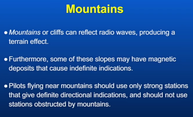How do mountains affect NDB signals?