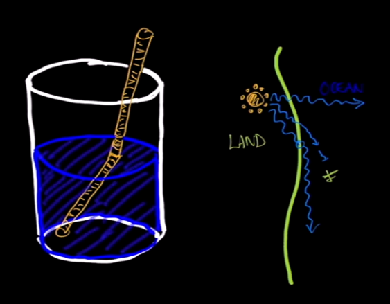 Shorelines can refract or bend low-frequency radio waves as they pass from land to water. A pilot flying over the water should not use an NDB signal that crosses over a shoreline at an angle of less than 30°. Anything greater than 30° has little effect