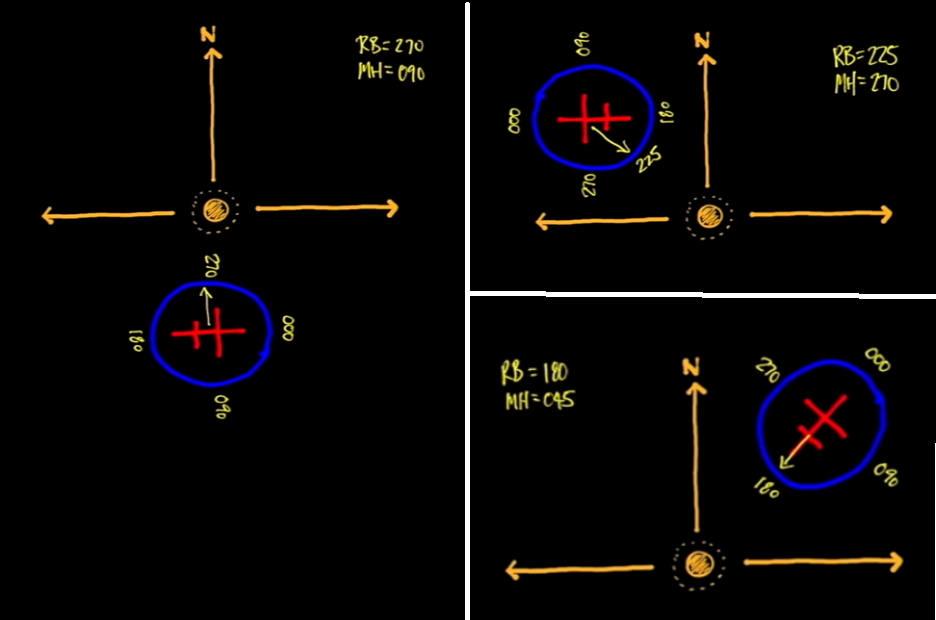 This means if I am flying directly to the station, my bearing indicator should read 0/360°.