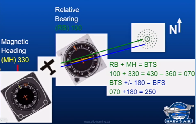 If you want to track outbound from an NDB, then you would use the reciprocal of the magnetic bearing to the station (BTS) that you just calculated.