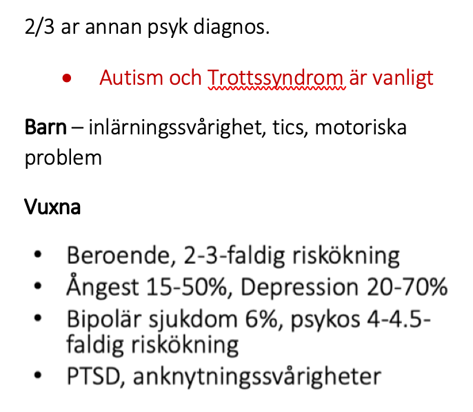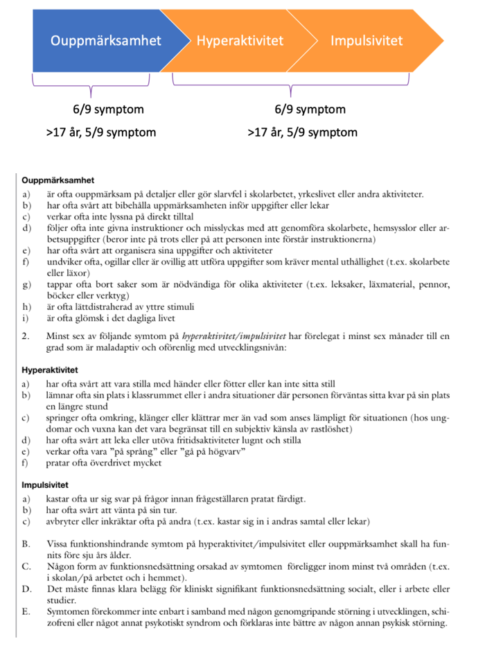 Neuropsykiatriskt tillstånd innefattande koncentrations- och uppmärksamhetssvårigheter, och/eller hyperaktivitet med impulsivitet.