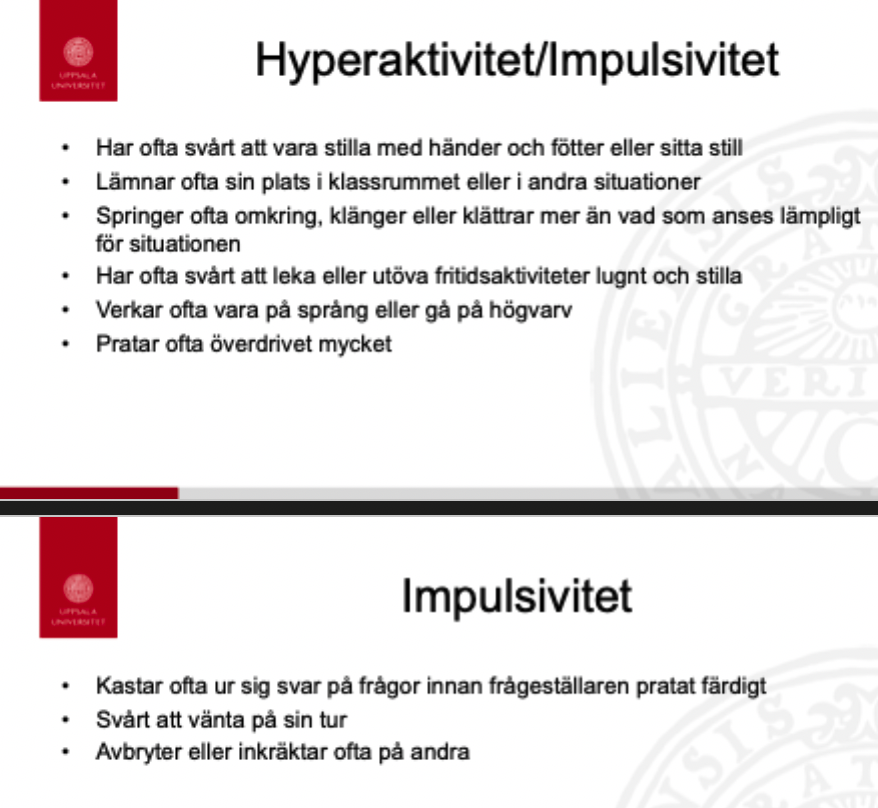 Nämn exempel på symtom på hyperaktivitet/impulsivitet