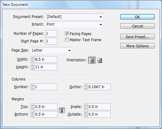 New Document dialog box
