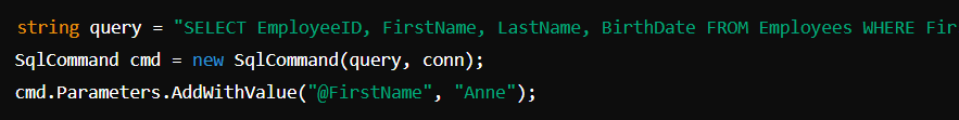 Avoid String Concatenation: Using string concatenation for building SQL queries can lead to SQL injection attacks.