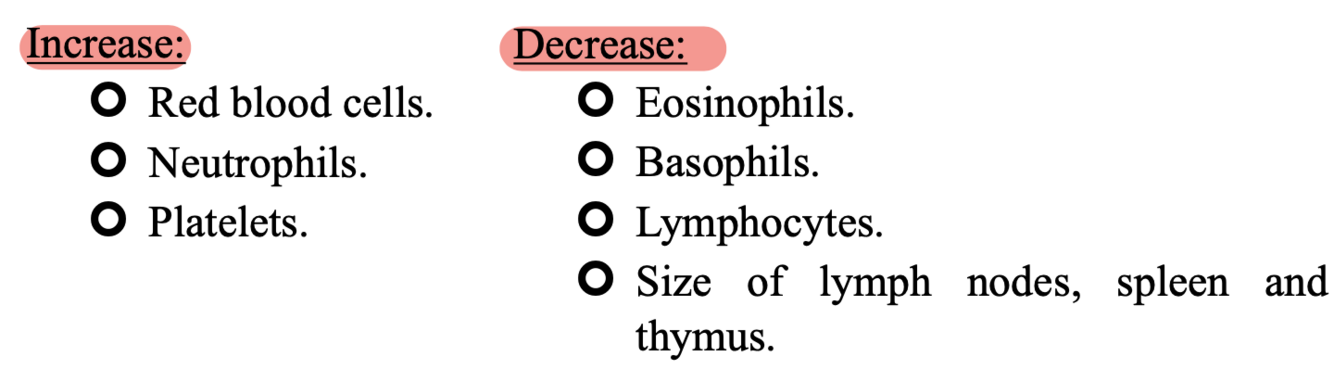 What is the action of Glucocorticoids (Cortisol) on blood cells and lymphatic organs?