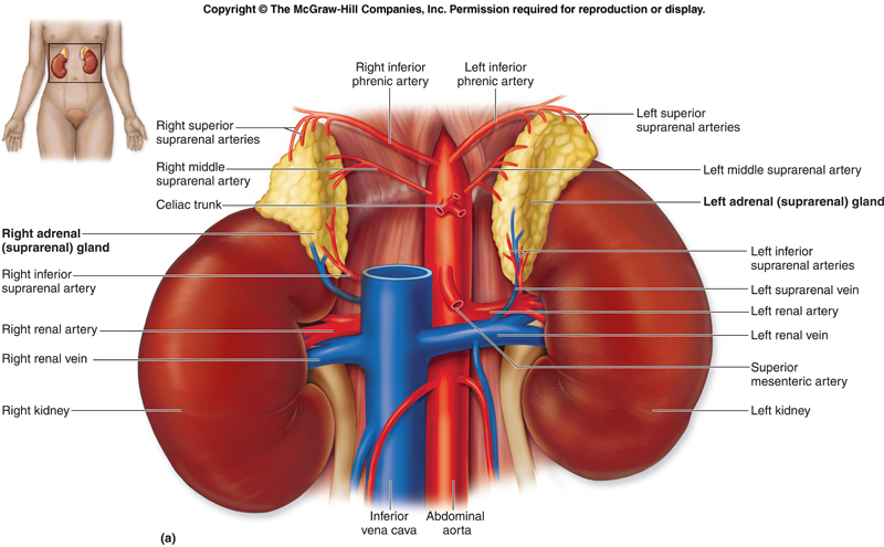 The superior, middle, and inferior suprarenal arteries enter the capsule of the gland and are distributed in 2 ways: