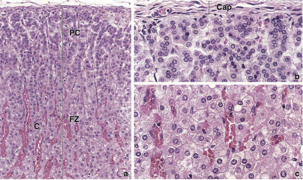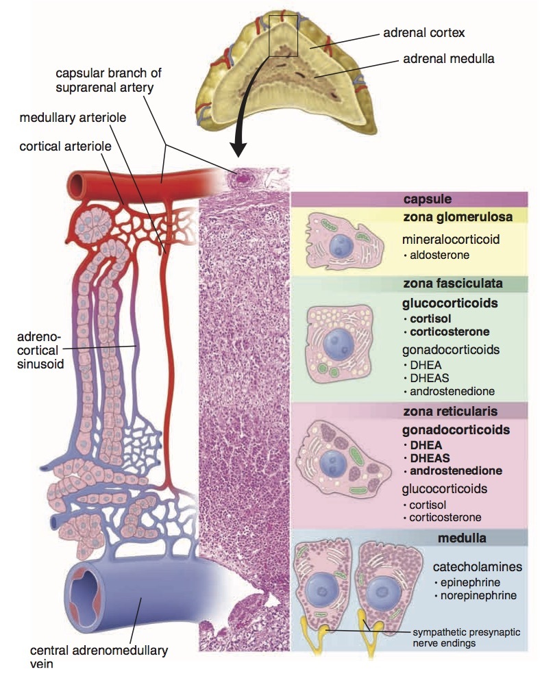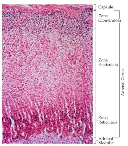 Cells of the adrenal cortex are located in 3 zones and each zones produces a different hormone: