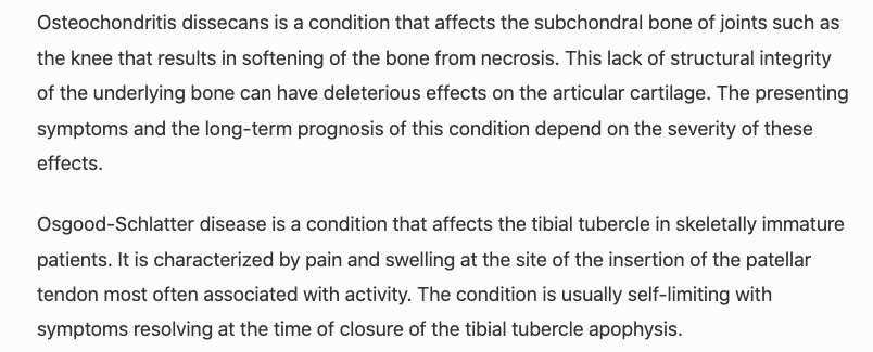 difference between osteochondritis dissecans and Osgood schlatter syndrome