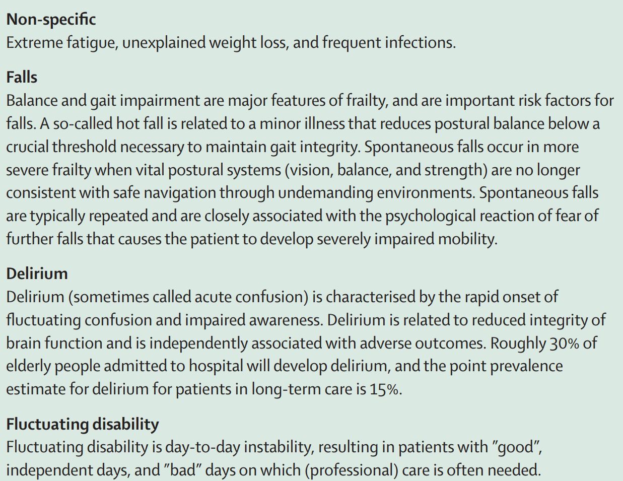 Clinical presentation of frailty