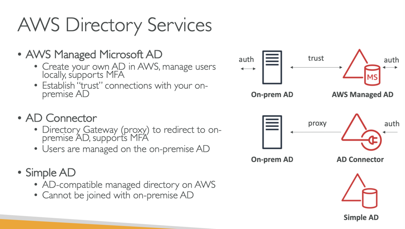 Exam Tip: Used any time you hear “Active Directory” or “Amazon Active Directory”