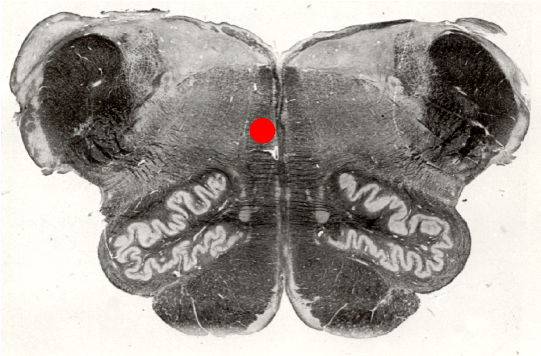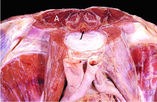 This is a cross section at the level of the L3 IV disc. What would you expect to find in the region indicated by the black arrow?