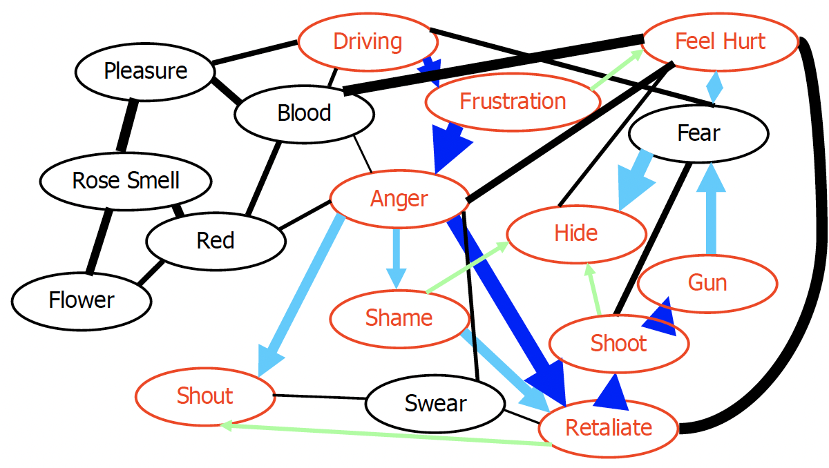 For example, the more aggression and violence we experience, the greater the number of nodes and the strength of the connections