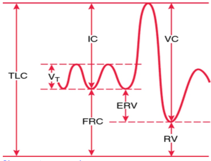 Vital capacity decreases due to reduced diaphragm strength and increased RV