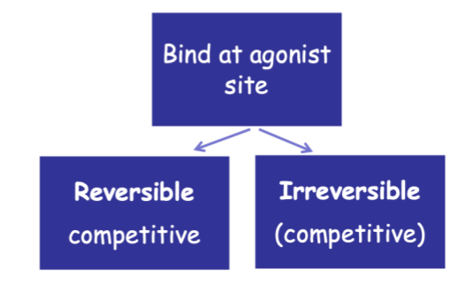 In terms of classifying antagonists, what are the 2 subgroups of those that bind at the agonist site