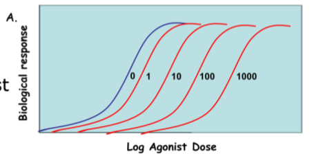 Increasing concentrations of antagonist progressively inhibit the agonist response