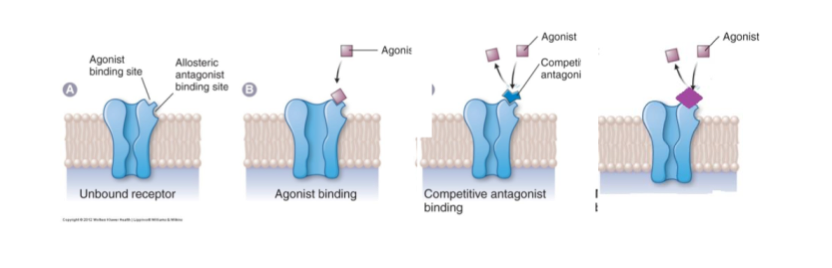 Antagonist competes with agonist for receptor binding sites