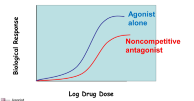 Where would a non-competitive antagonist block