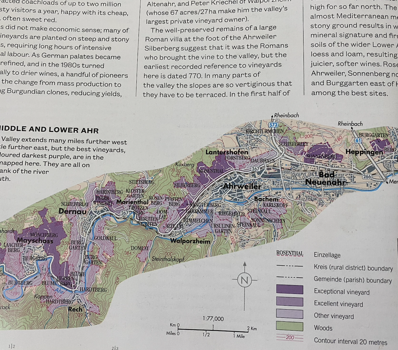 Ahr valley Runs East-West and benefits from the moderating influence of this