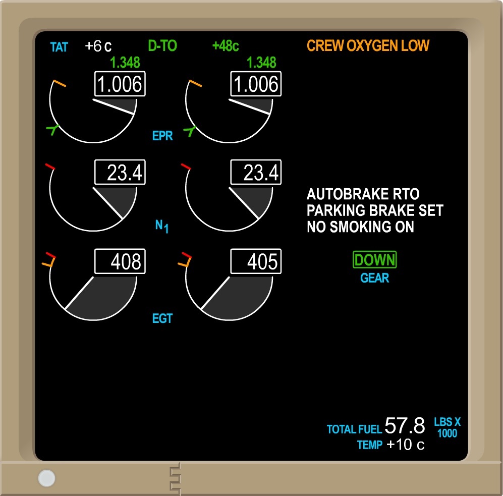 B. causes the EICAS message LANDING ALT to display