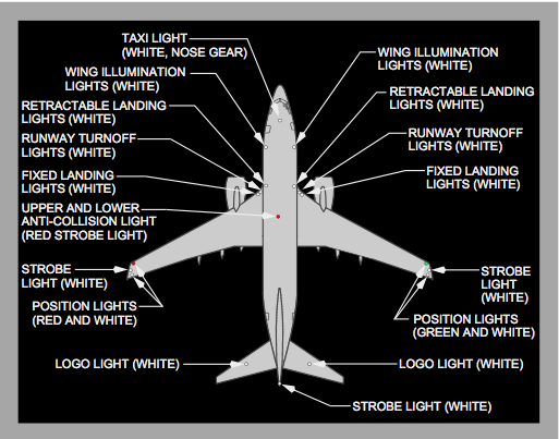 2 red anti–collision strobe lights are located on the top and bottom of the fuselage