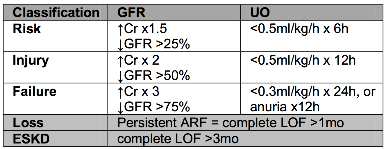 Significant decline in renal function over hrs or days manifesting as an abrupt and sustained ↑ in Se U and Cr