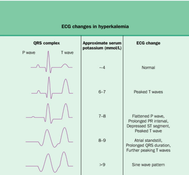 ECG changes in hyperkalaemia with potassium level of 9 or above