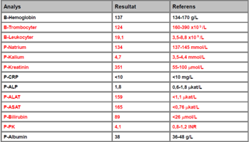 Symtom och kliniska fynd vid akut leversvikt (i nedstigande led)