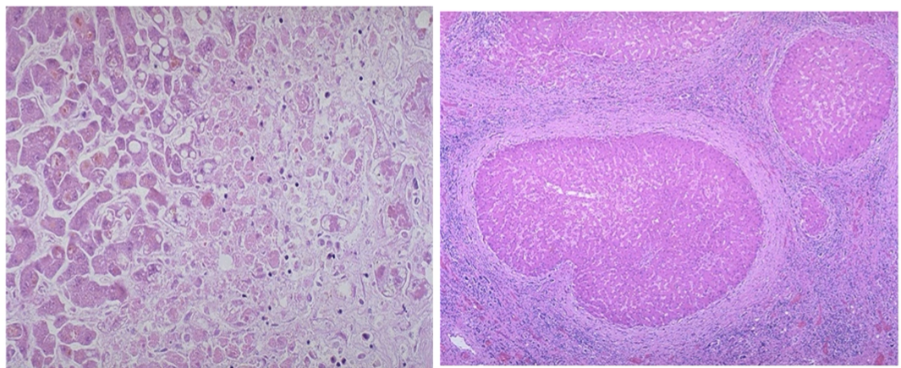 Vad hade en biopsi visat vid akut leversvikt (det har vi inte möjlighet till men ändå)?