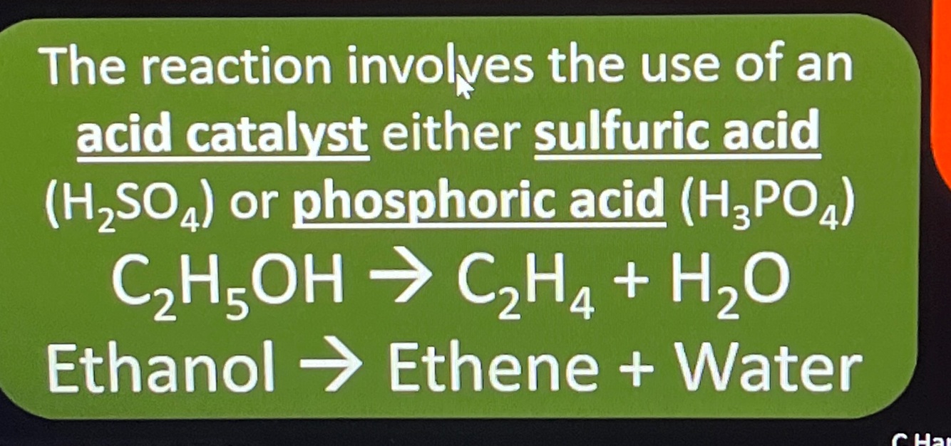 Give an equation for the dehydration of ethanol to produce an alkene
