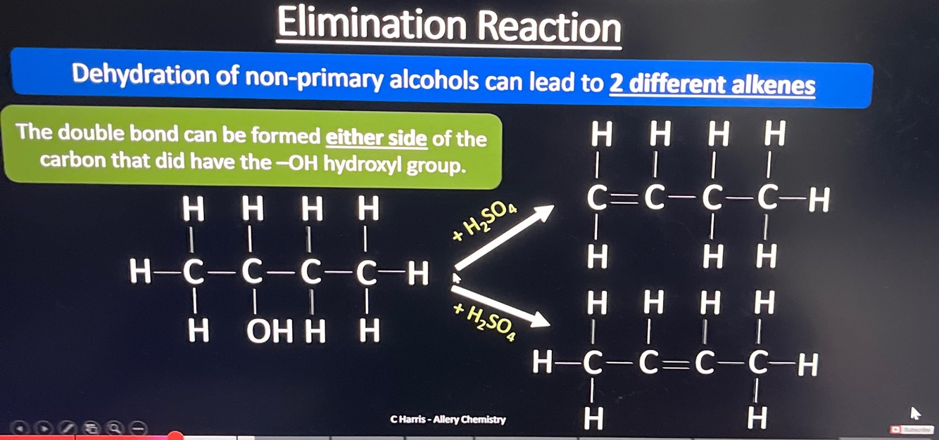 May form 2 different alkenes due to the ability for the double bond to occur on either side of the OH group