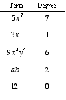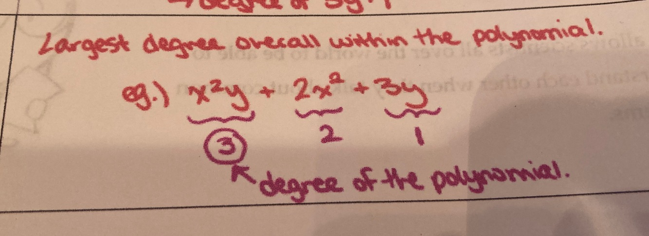 For a term with one variable, the degree is the variable’s exponent. With more than one variable, the degree is the sum of the exponents of the variables.