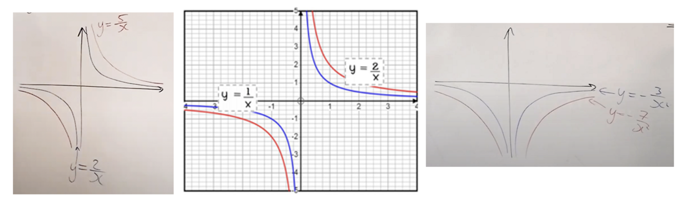 o larger ‘a’ value in y = a/x…