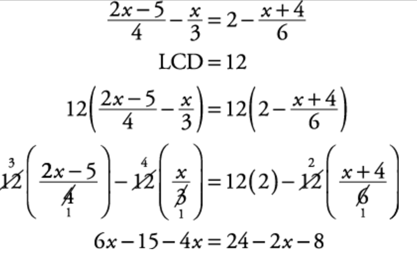 The key here is to multiply both sides of the equation by the least common denominator, not just one side!