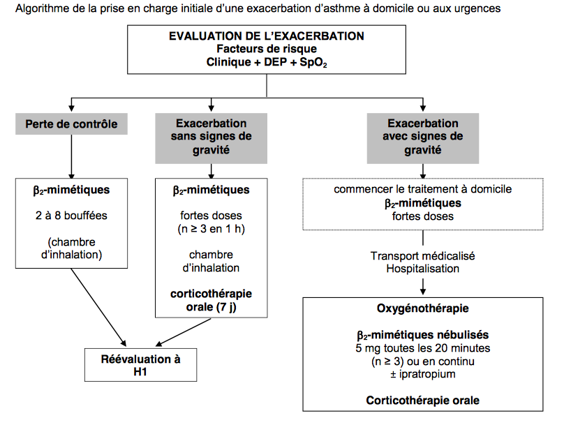 Algorithme de la pec initiale d’une exacerbation d’asthme