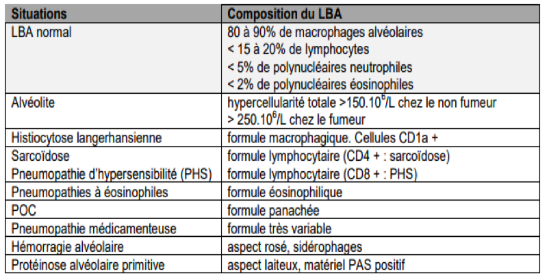 Orientation étiologiques selon la composition du LBA :