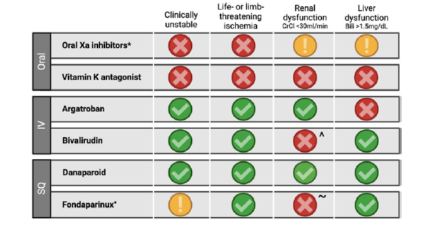 Uses/Contraindication of AC in HIT table
