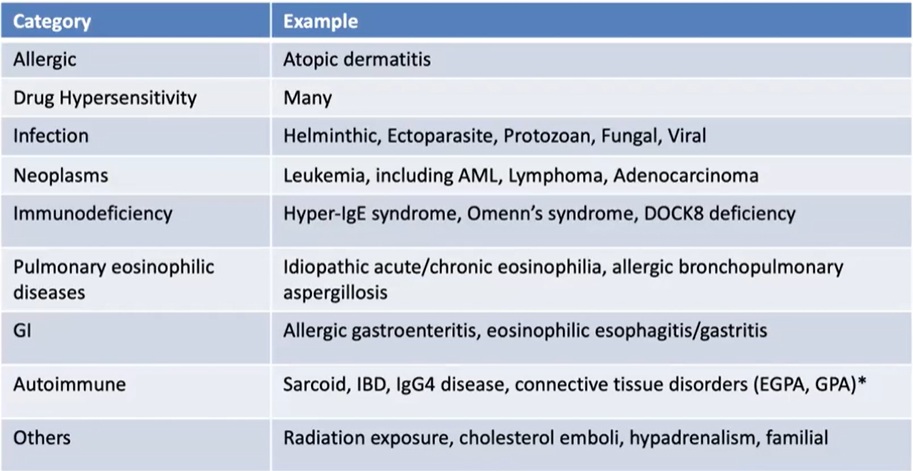 Secondary causes of eosinophilia table