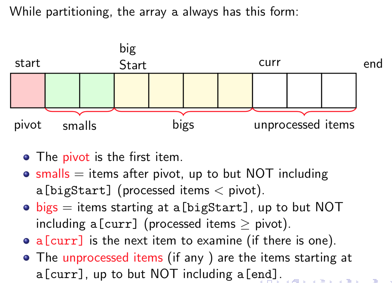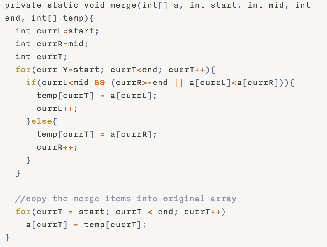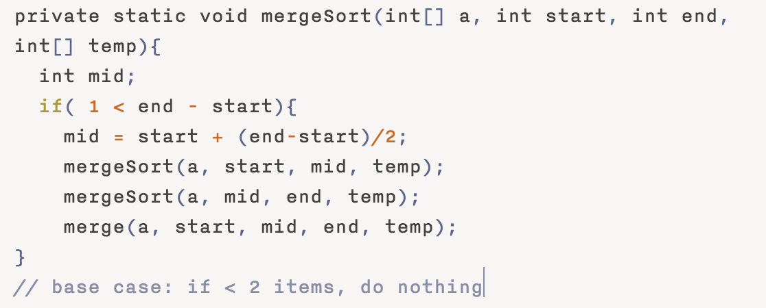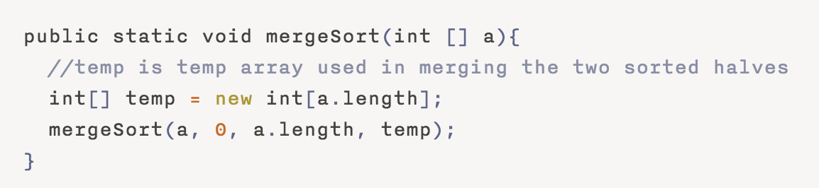 While there is more than 1 item, creates a temp array, it splits the list in half, sorts each side, then merges the items back together.