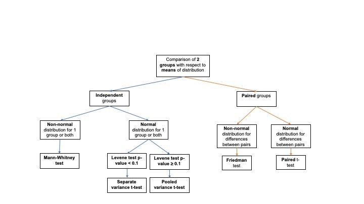 Statistical tests for comparing 2 groups with respect to means: Paired groups