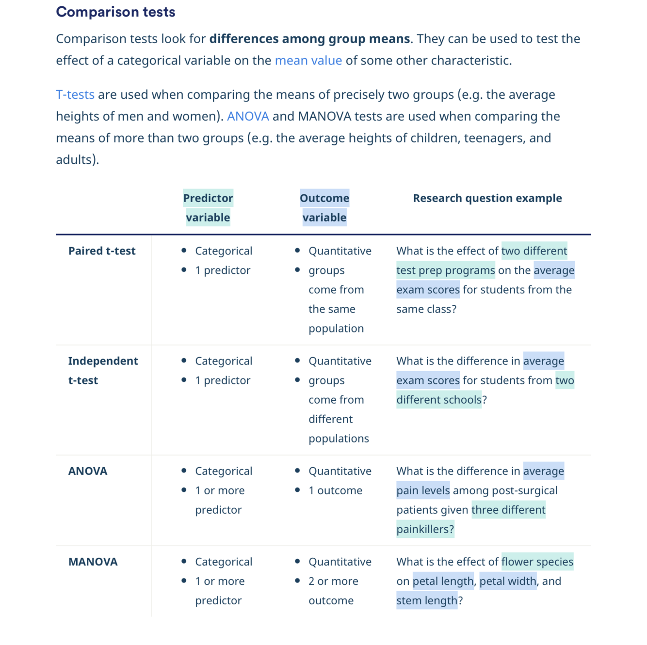 Predictor variable: Categorical (2 groups)