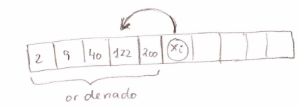 Busca el lugar que le corresponde a Xi dentro del subarray que ya está ordenado y desplaza a todos los elementos necesarios para hacerle hueco.