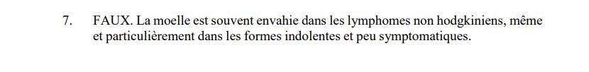 v/f les lymphomes envahissent rarement la moelle osseuse