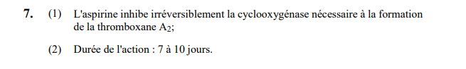 quelle est le mode d’action de l,aspirine et durée d’action sur les plaquette