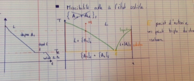 C’est le point d’Eutexie noté E, c’est le point triple du diagramme isobare, d’équilibre liquide solide
