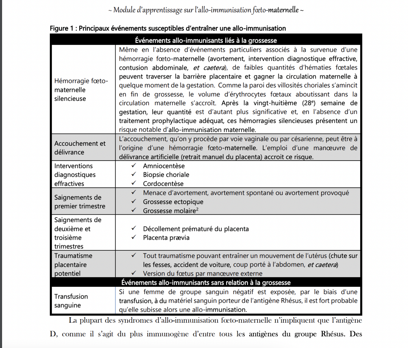 Allo-immunisation: système Rhésus - pathogénèse de l’allo-immunisation - nommez les différents événements allo-immunisants liés à la grossesse