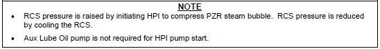 RCS pressure is raised by cycling HPI breaker to compress PZR steam bubble and lowered by cooling the RCS.