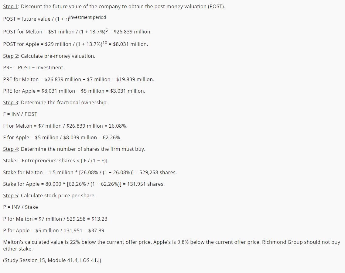 Fractional Ownership and Stock Price VC Method of Calculation