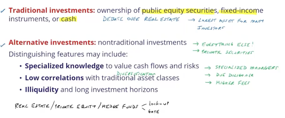 76.1 Compare the features between traditional investments and alternative investments: (3 points each)
